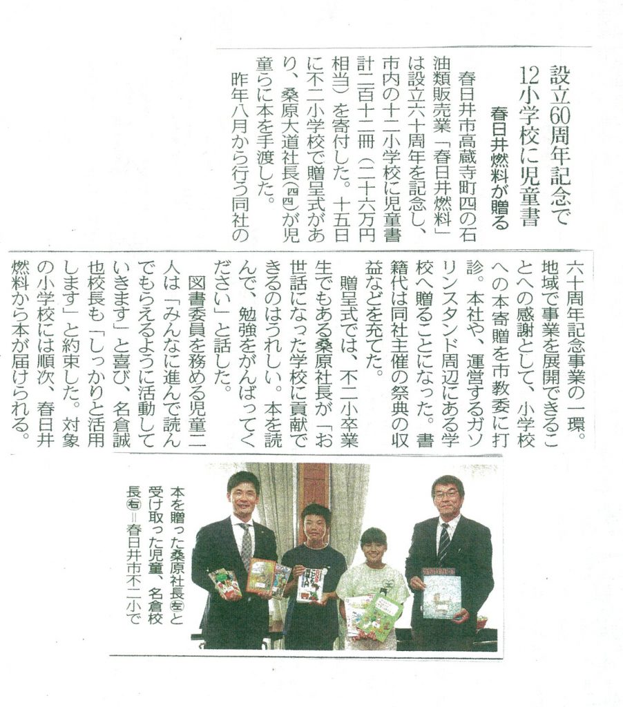 平成30年5月16日の中日新聞近郊版に小学校への図書寄贈の記事が掲載されました。